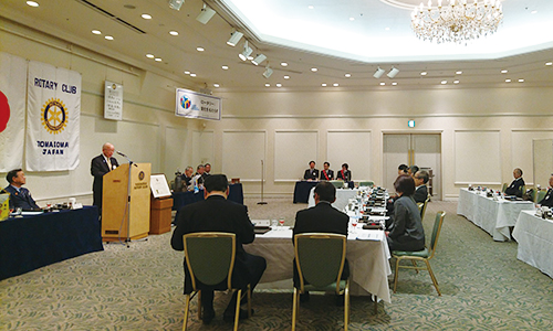 苫小牧RC の渡辺会長、苫小牧北RC の豊田会長、苫小牧東RC の奥野会長が、今年度の活動方針、行事などを報告し、地域に対し貢献活動を行っていきたい旨をお伝えしました。また、各クラブの活動計画書を手渡しました。
