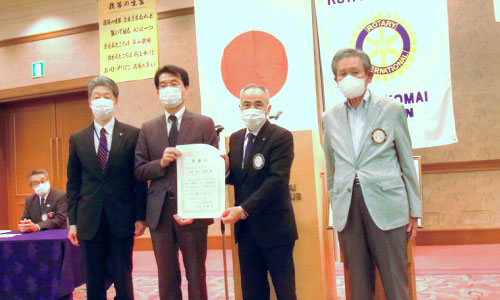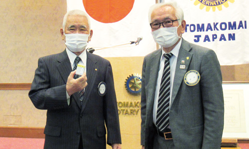 2020-2021年度 インターシティミーティングの開催内容が変更となり、ロータリアンとして奉仕の理念に基づき、登録料の一部を国際ロータリー第2510地区第12グループより苫小牧医師会を通じコロナ禍で奮闘される医療従事者への支援金として、また北海道胆振東部地震の被災地3町(厚真町・安平町・むかわ町)へ義捐金として寄贈させていただきました。第12グループ山本ガバナー補佐と12グループ4クラブの会長の5名が揃って苫小牧医師会沖会長並びに被災地3町の町長様のもとを直接訪れ支援金の寄贈を行い、情報交換を交えそれぞれ懇談を設けました。