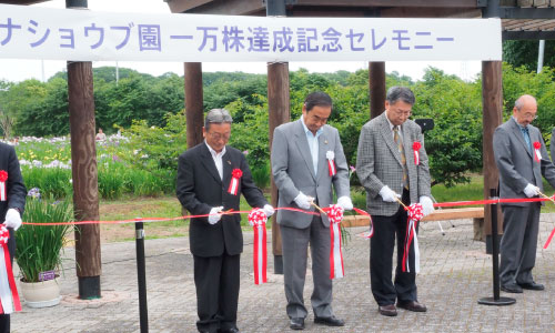 苫小牧市主催の「錦大沼ハナショウブ園1万株達成記念式典」に、当クラブ橋本会長、伊部幹事が参加しました。緑の奉仕事業としてスタートしたはなしょうぶ維持管理費の寄付は今年度が最後の年でしたが、現在まで継続事業として続けています。