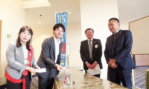 中原会長、阿部幹事が市長表敬訪問前に市役所でお出迎えし、10時より金澤市長を表敬訪問しました。会談が進む中、直近におこった災害(津波避難)が話題として取り上げられ、ロータリークラブが災害時にできる地域支援などについても話がされました。